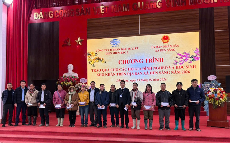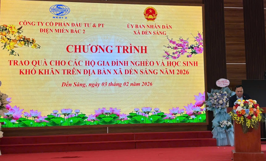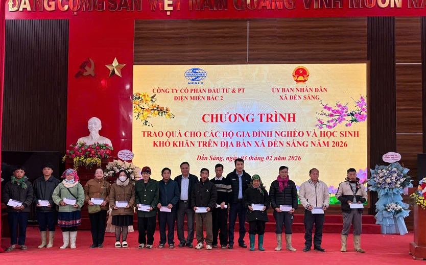 Nhằm kịp thời chia sẻ khó khăn, động viên tinh thần cho các cháu học sinh nghèo và các hộ gia đình khó khăn trên địa bàn nhân dịp Tết nguyên đán Bính Ngọ 2026, ngày 04/02/2026, đại diện Ban Lãnh đạo và CBCNV Công ty CP NEDI2 đã có buổi gặp gỡ và trao quà Tết cho các cháu học sinh nghèo vượt khó, các hộ gia đình khó khăn tại 3 xã: Dền Sáng, Bản Xèo, Bát Xát.