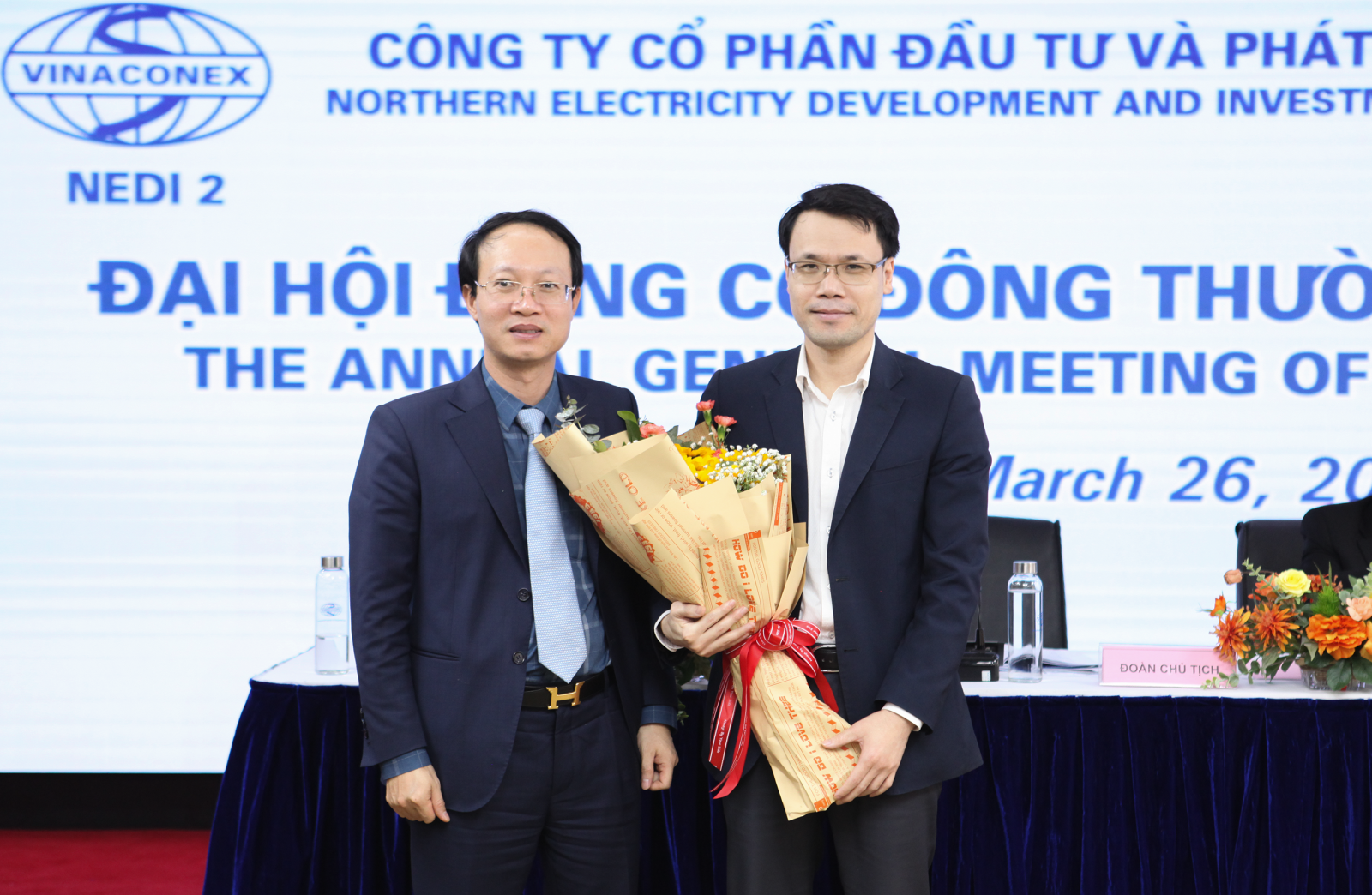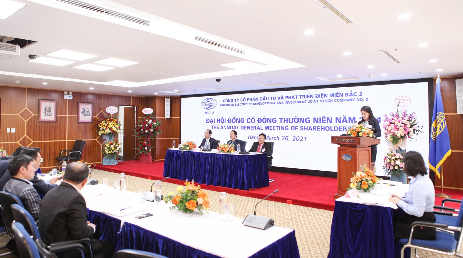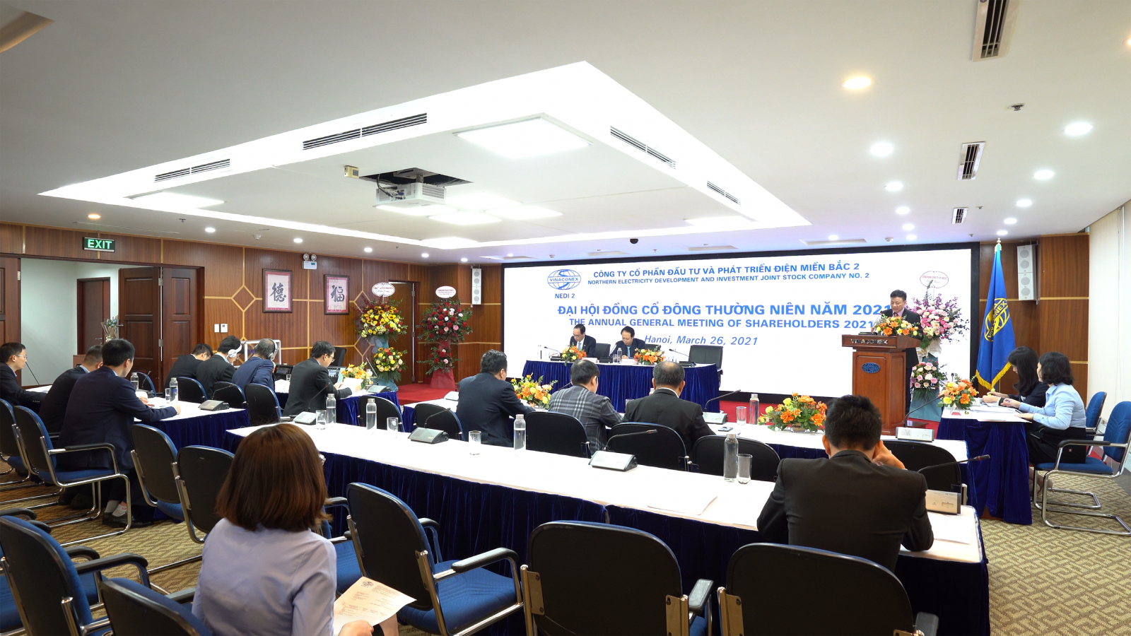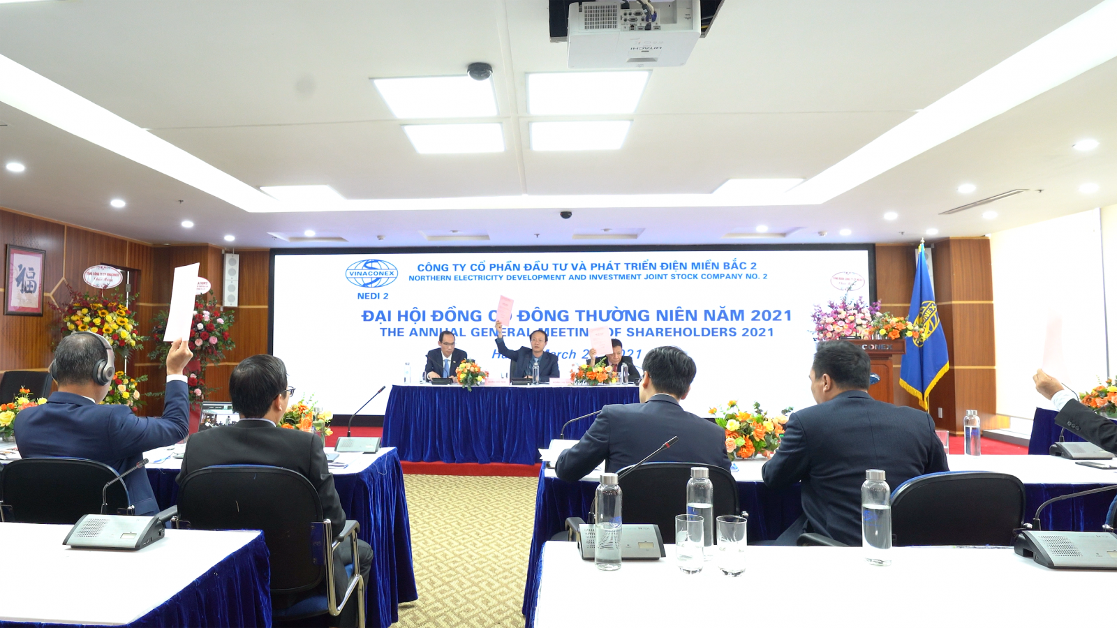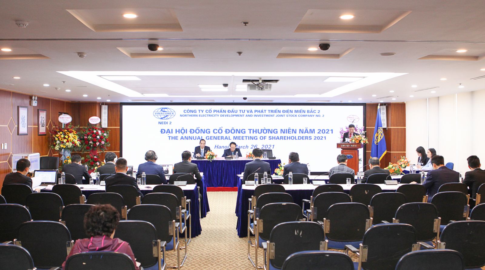 Công ty Cổ phần Đầu tư và Phát triển Điện Miền Bắc 2 (NEDI2) đã tổ chức thành công Đại hội đồng cổ đông thường niên năm 2021 tại Hội trường tầng 21, Tòa nhà Vinaconex số 34 Láng Hạ, Đống Đa, Hà Nội vào sáng ngày 26/03/2021. Đúng 8h30 phút Đại hội đã chính thức khai mạc.